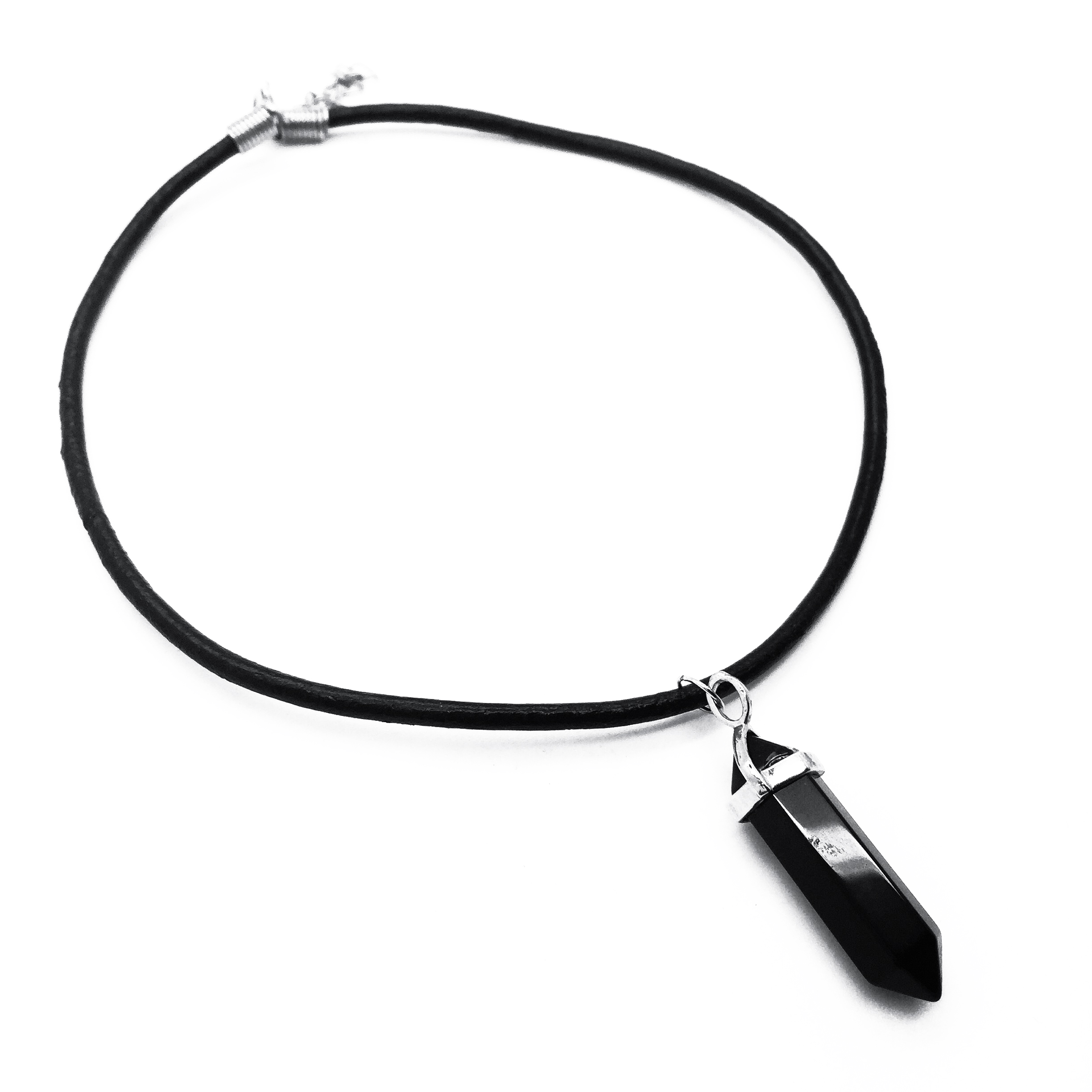 Obsidian crystal stone pendant. Leather cord is 18.5" (cut to fit your size).